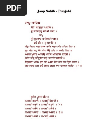 Jaap Sahib Pdf In Punjabi : Sahib clearly declares jaap sahib and other baanis in sri dasam granth are guru gobind singh ji maharaj's own composition.
