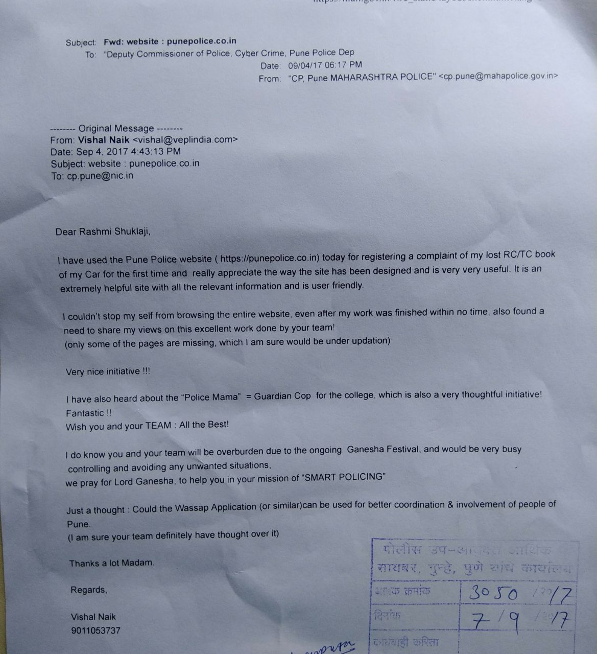 Punepolice.co.in Lost And Found - Information reported under this application is not a subject matter of enquiry/investigation.
